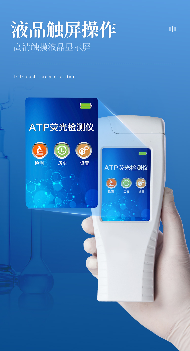 ATP熒光檢測儀該設(shè)備為全新升級產(chǎn)品,安卓智能操作系統(tǒng)。操作采用生物化學反應(yīng)方法檢測ATP含量,ATP熒光檢測儀基于螢火蟲發(fā)光原理,利用“熒光素酶—熒光素體系”快速檢測三磷酸腺苷(ATP)。ATP拭子含有可以裂解細胞膜的試劑,能將細胞內(nèi)ATP釋放出來,與試劑中含有的特異性酶發(fā)生反應(yīng),產(chǎn)生光,再用熒光照度計檢測發(fā)光值,微生物的數(shù)量與發(fā)光值成正比,由于所有生物活細胞中含有恒量的ATP,所以ATP含量可以清晰地表明樣品中微生物與其他生物殘余的多少,用于判斷衛(wèi)生狀況。